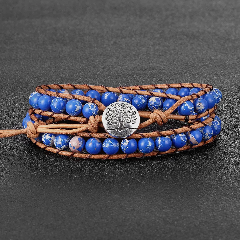 The Vintage 6mm Emperor Stone 2 Laps Wrap Bracelet is a piece of jewellery that exudes timeless elegance and an earthy charm. This particular style features beads of Emperor Stone, known for its deep, rich colours and believed by some to have healing properties. The 6mm beads are carefully strung together, wrapping around the wrist twice for a layered look that’s both classic and on-trend. The bracelet is secured with an adjustable cowhide rope, adding a touch of rustic luxury and ensuring a comfortable fit for a variety of wrist sizes. Handmade with attention to detail, this bracelet is not just an accessory but a statement piece that can complement both casual and formal attire. Whether you’re looking for a unique gift or a personal treasure, the Emperor Stone Wrap Bracelet is a versatile choice that carries the allure of vintage craftsmanship.